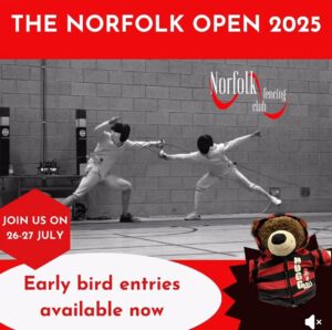 It’s the Norfolk Open on 26-27 July, a great event with lots of fencing for all abilities.  Entry via Sport80